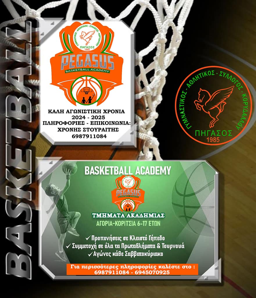 - Try-outs!Με σκοπό να μπολιάσει στα μικρά παιδιά τις ιδέες της άθλησης και του πολιτισμού, και μέσα από την ευγενή άμιλλα να αναδείξει τα ταλέντα των παιδιών, αλλά και να προετοιμάσει τους αυριανούς αθλητές που θα στελεχώσουν την ανδρική ομάδα του Πήγασου Κορυδαλλού , οι υπεύθυνοι απευθύνουν πρόσκληση στη νεολαία και στους γονείς του Δήμου Κορυδαλλού …